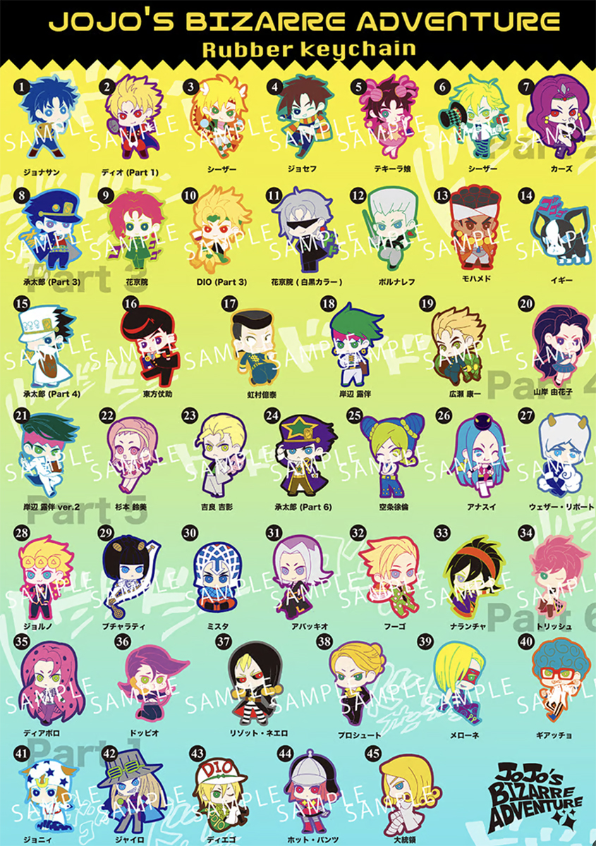 A set of all 45 of our JOJO'S BIZARRE ADVENTURE Rubber keychain.