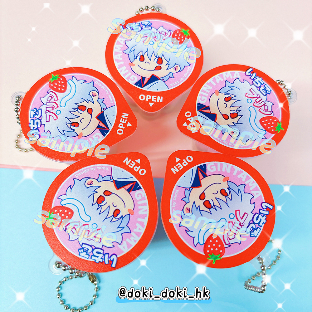 Gintama Gintoki Strawberry Pudding Cup Keychain Charm
